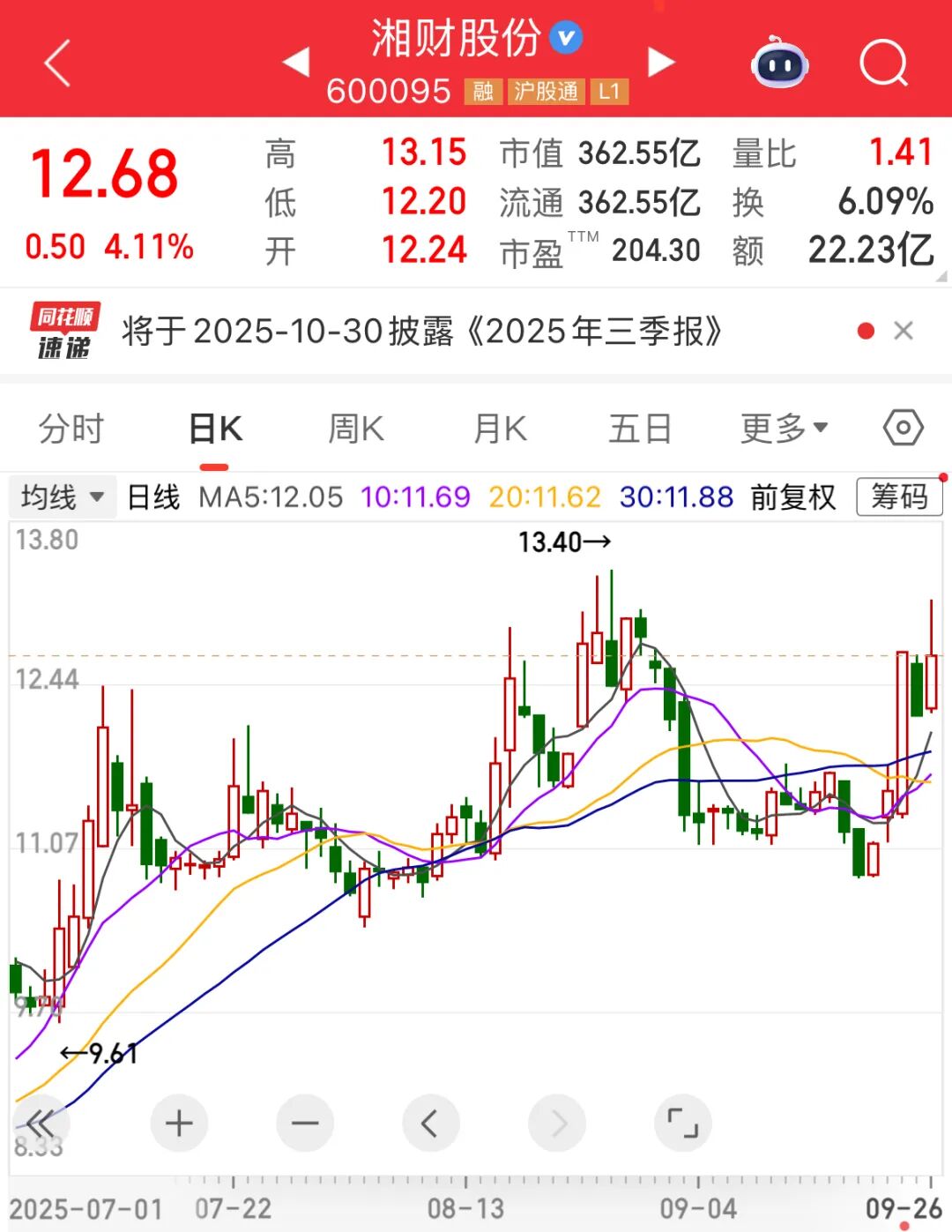 截至9月26日收盘,湘财股份涨4.11%,报12.68元/股;大智慧涨0.32%,报15.73元/股。