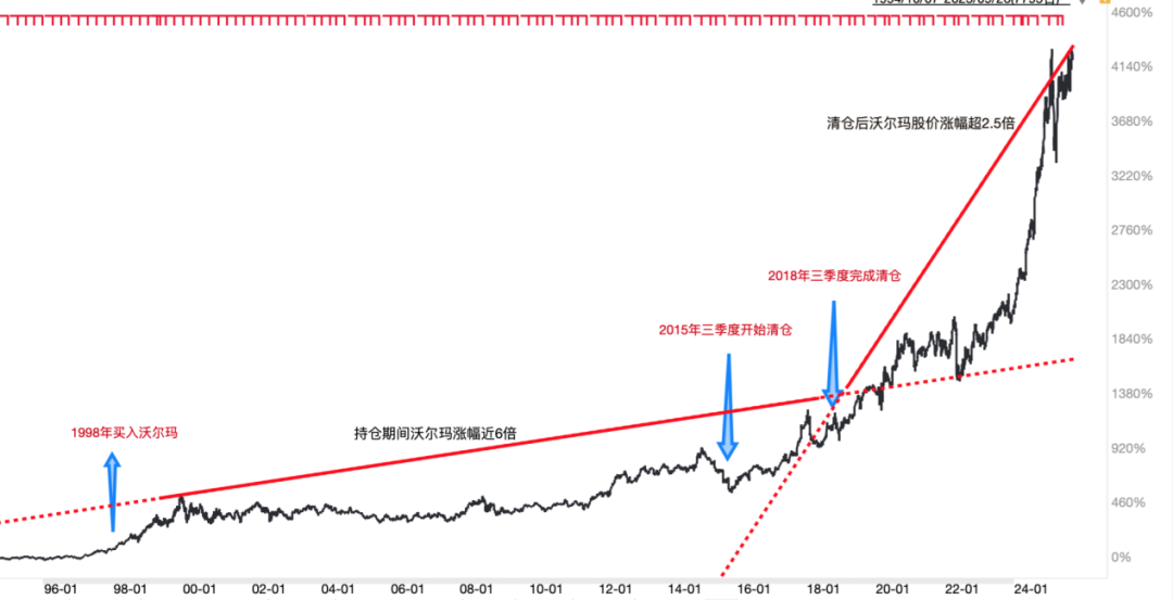 另一个股神典型“卖飞”的例子则是沃尔玛。