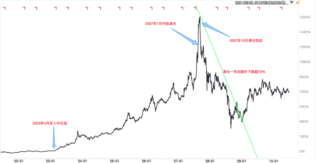 在所有的统计交易中,2007年清仓中石油,可以说是巴菲特近年来最成功的一次“逃顶”交易。