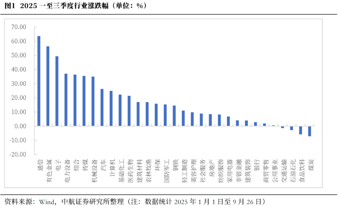 结构上,本轮经济转型牛中,“科技”和“再通胀”是两条中期主线。2025年前三季度来看,科技主线,尤其是科技硬件主线较为明确,而“反内卷”交易热度持续性不高。预计今年第四季度,一是科技仍是主线之一,但内部或将迎来“高切低”,或从硬件切换至应用;二是,“十五五”规划指引下,后续“反内卷”政策以及全国统一大市场的政策框架有望进一步明确,受政策利好且相对低位的资源品以及消费或将受到资金青睐。