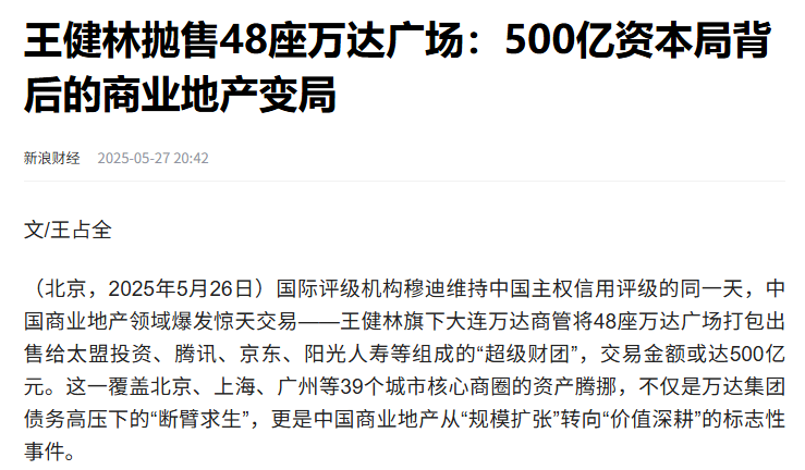 为了还债,他疯狂地甩卖资产,仅最近两年时间里,就有超过80座万达广场被摆上货架,连北京总部所在的大望路万达广场都卖了,万达电影的控股权也卖了,能卖的都卖了。