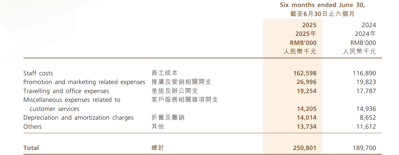不过,新京报贝壳财经记者注意到,报告期内,美丽田园的销售开支由上年同期的1.9亿元增至2.51亿元,增幅超32%,主要原因包括员工成本、推广及营销相关开支、折旧及摊销有所增长。