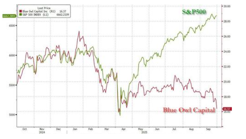 市场数据显示,全球最大的私募信贷管理公司之一黑石集团旗下的私募信贷基金BXSL,其股价已跌至2025年新低,表现远远落后于标普500指数。另一家行业巨头Blue Owl的股价也同样岌岌可危。据彭博报道,Blue Owl已经深度参与到AI领域的融资活动中。
