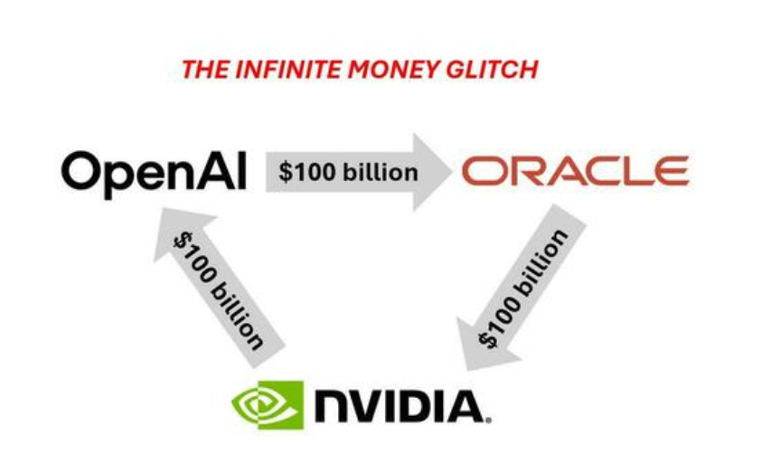 摩根大通分析师Michael Cembalest在他最新的《市场观察》报告中,精辟地描述了这种被许多同行称为“无限金钱漏洞”(infinite money glitch)的AI循环经济。