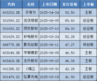 其中,年初至今发行价格最高的天有为(603202),发行价格为93.5元/股,首日收报116元/股,涨幅为24.06%,首日单签浮盈为1.13万元。