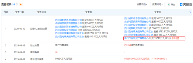 这是自2003年公司完成私有化改制、国有资本退出后,时隔20多年当地国资的再次入股。同时,剑南春的注册资本也由8.08亿元增加至9.455亿元。