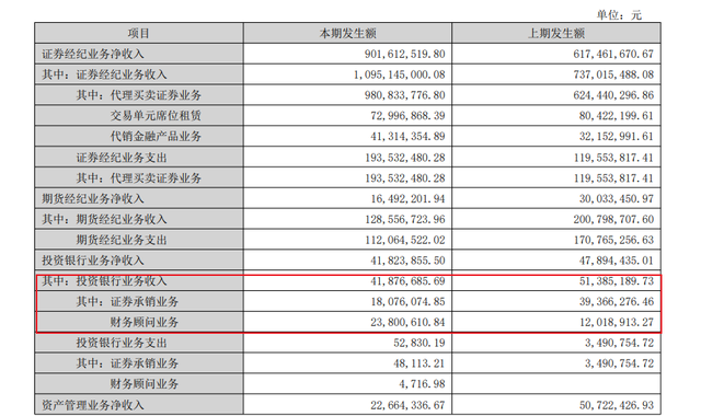 收入降至1.32亿元,占营业收入的比重降至3.37%。上半年该收入不足5千万元,可见保荐业务资格停滞半年导致收入面临不小的压力。