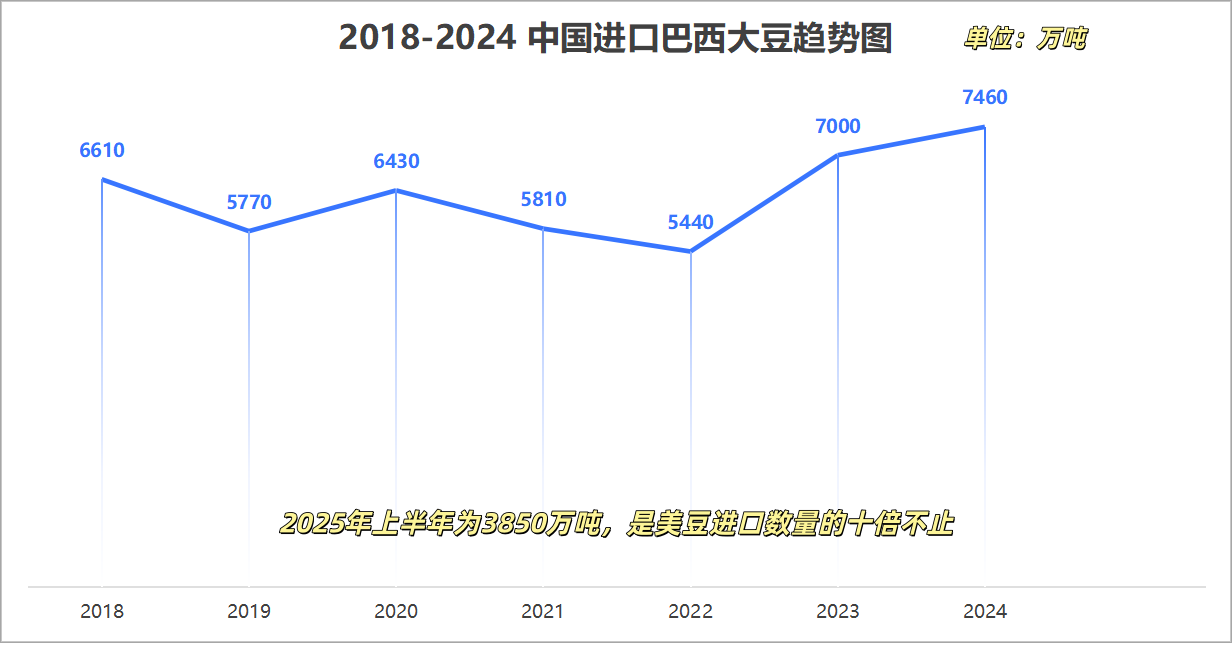 2018-2025中国进口巴西大豆趋势图
