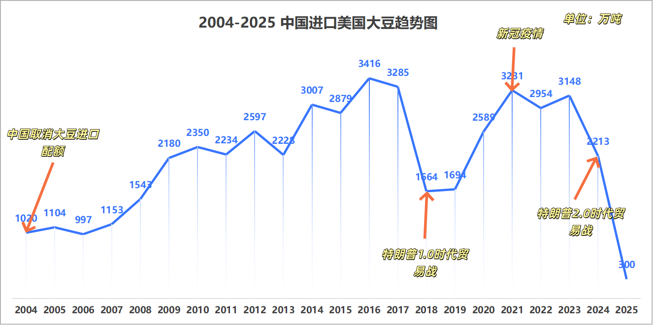 2004-2025中国进口美豆数据及关键拐点