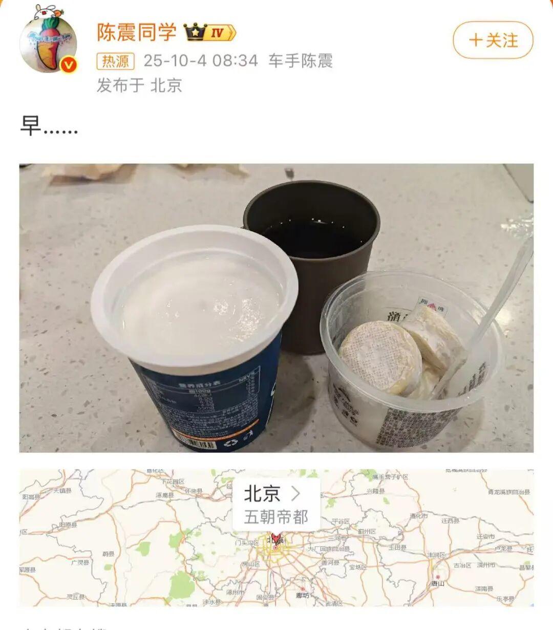 随后,@陈震同学 微博转发北京交警通报,并配文“”。
