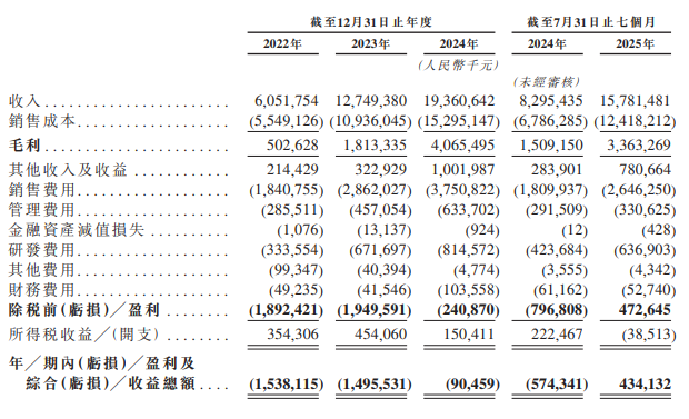 招股书显示,2022年至2024年,岚图汽车的营收分别为60.52亿元、127.49亿元、193.61亿元,复合年增长率为78.9%;今年1-7月的营收为157.8亿元,同比增长90.2%。