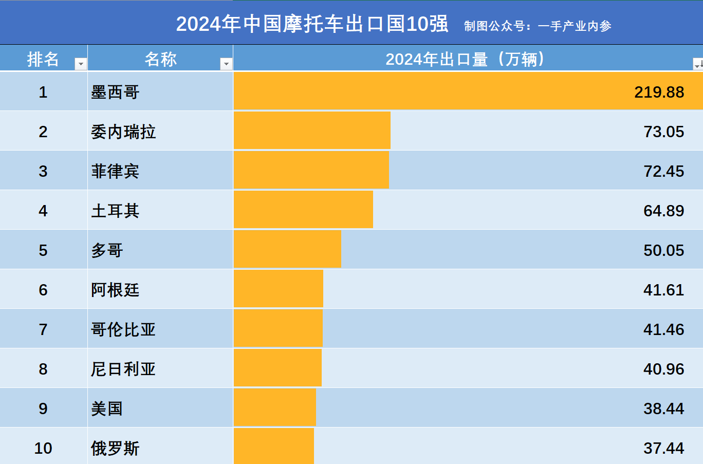 另附:2024年度中国摩托车出口10强国家名单,数据源于:中国摩托车商会。