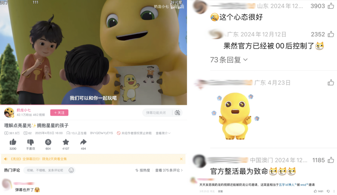 奶龙也没忘记最初捧红它的那批年轻梗王。官方彻底“放下身段”,不光亲自下场玩梗,还邀请B站二创大神参观公司、积极回应开放评论区的呼声,成功挽回一波好感。