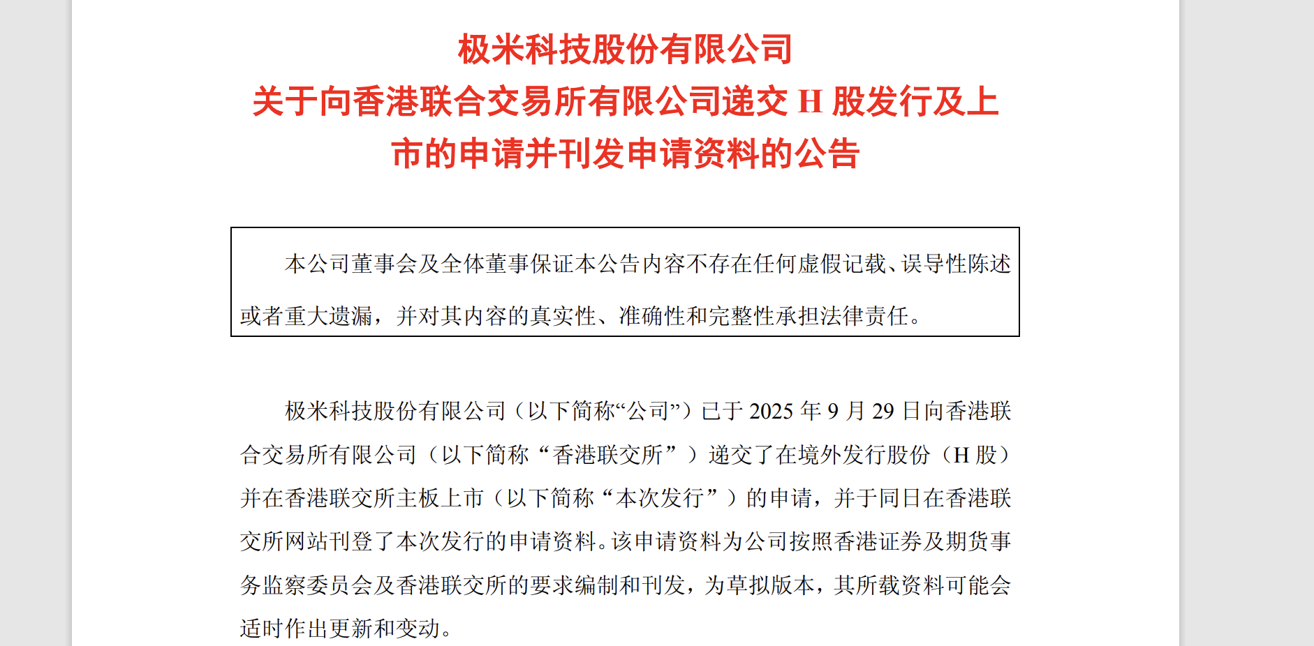 微成都报道9月30日,科创板上市公司极米科技(688696.SH)发布公告称,公司已于2025年9月29日向港交所递交了在境外发行股份(H股)并在港交所主板上市的申请,并于同日在香港联交所网站刊登了本次发行的申请资料。