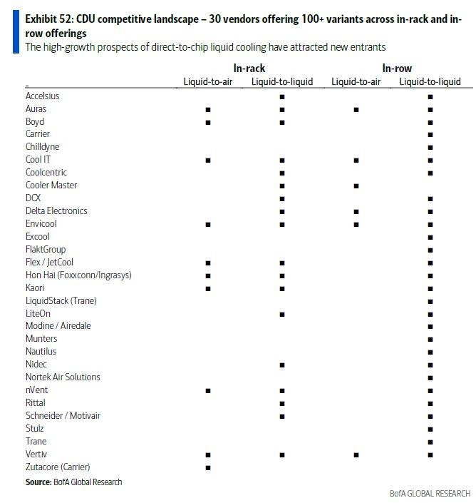 目前市场上有超过30家供应商。然而,数据中心运营商对“正常运行时间”(Uptime)的极致追求,决定了他们极度保守,倾向于选择技术成熟、服务可靠的供应商。这使得拥有成熟产品线和全球服务网络的老牌厂商具备天然护城河。维谛(Vertiv,通过2023年收购CoolTera增强了实力)、施耐德电气(Schneider Electric,通过2025年2月收购Motivair布局)、台达电子(Delta Electronics)和nVent等被视为该领域的第一梯队领导者。