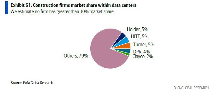 工程与建筑(Construction & Services):数据中心从图纸变为现实,离不开专业的工程设计和建筑施工。工程设计(占基础设施成本的4.5-6.5%)市场约40亿美元,主要玩家包括雅各布斯(Jacobs Solutions)、福陆(Fluor)等。而建筑施工市场则更为庞大(约650-800亿美元,包含大量材料设备转嫁成本),参与者包括Balfour Beatty、Skanska等国际建筑巨头。