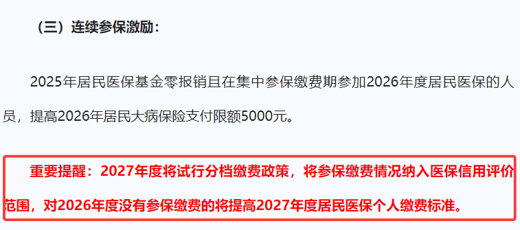 大家看懂了这个趋势吗?以后对经常断缴的参保人,惩戒措施估计会不断加码。而对于连续参保的人群,也有激励措施,比如上面提到的一些权益,还有就是提高大病保险支付限额。