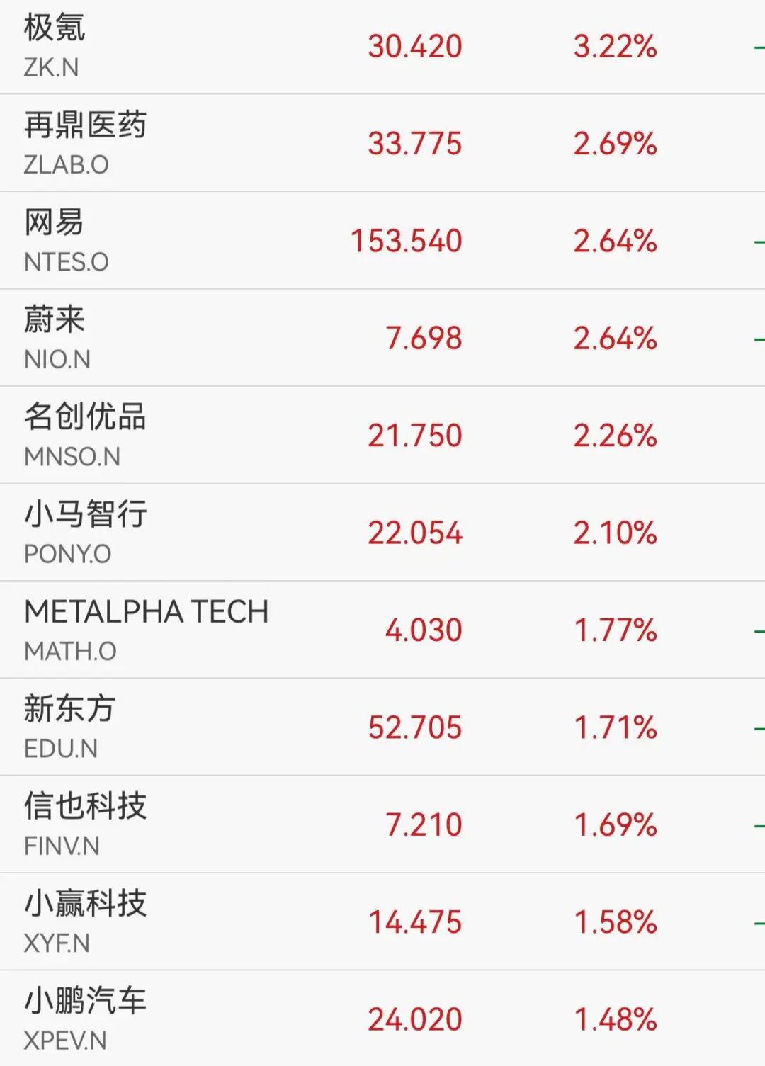 热门中概股盘初多数上涨,纳斯达克中国金龙指数涨0.16%,热门中概股盘初多数上涨,极氪涨超3%,网易、蔚来、名创优品涨超2%。