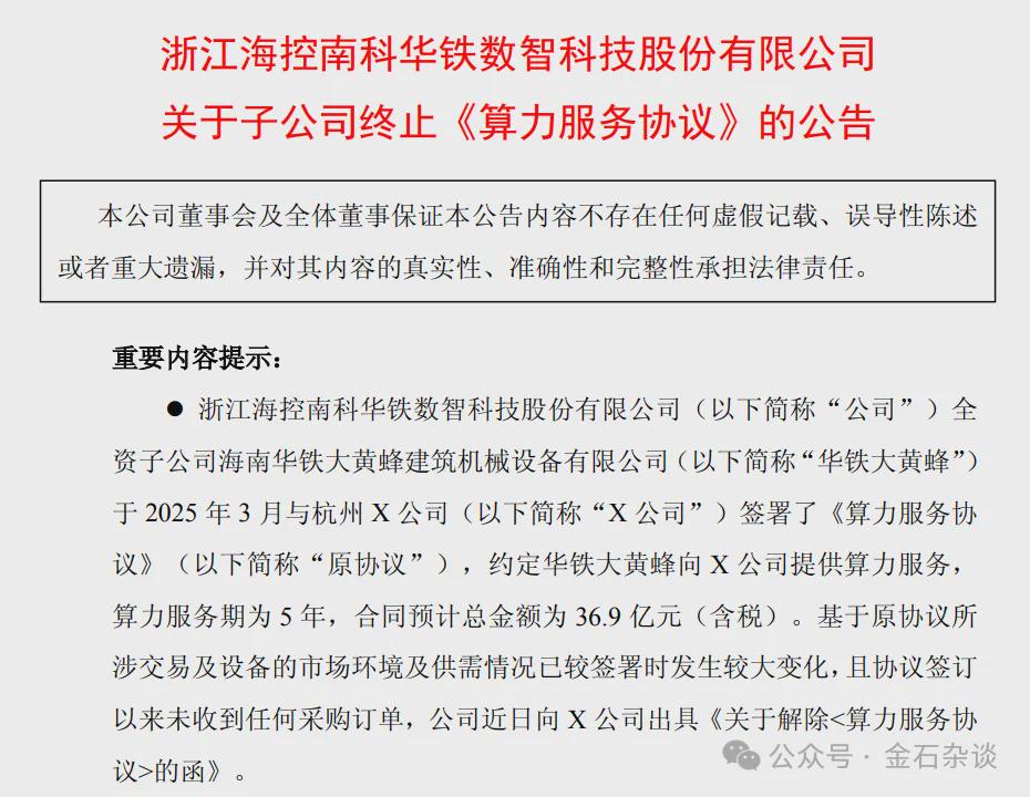 10月1日国庆日当天,海南华铁突发“ 黑天鹅 ”公告,36.9亿算力大单成为泡影。 有股民吐槽:“ 这公司吃相太难看,假期第一天就公告,股民们这个十一长假是过不好了... ”甚至,整个十一,股民都在数几个跌停。