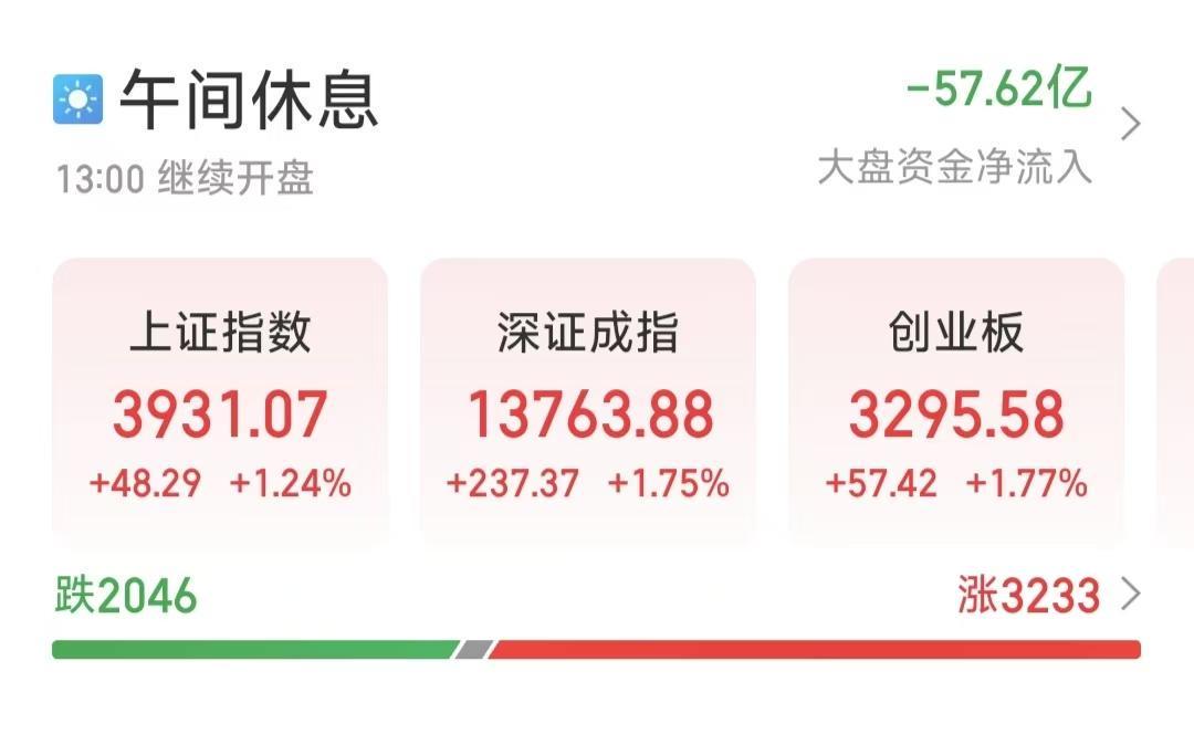 10月9日,节后首个交易日A股三大指数开盘大涨,上证指数盘中突破3900点,续创10年新高,自4月7日低点已涨超28%,年内累计涨幅达16%。截至午盘,上证指数报3931.07,涨1.24%,深成指报13763.88,涨1.75%,创业板指报3295.58,涨1.77%,三市半日成交额17269亿元,较上一交易日放量3571亿元。