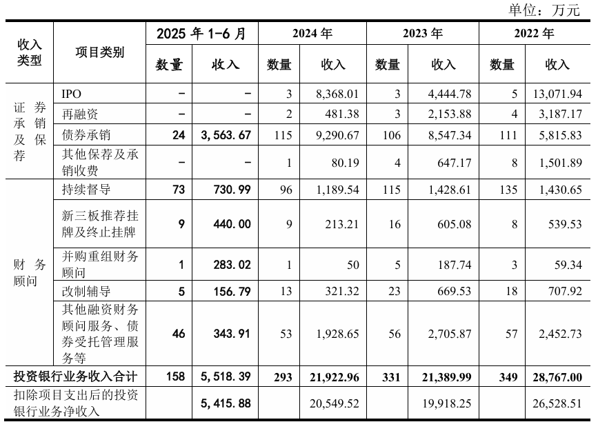相较之下,投行业务压力明显。2025年上半年,投行手续费净收入仅5415.88万元,同比下降约38.4%。