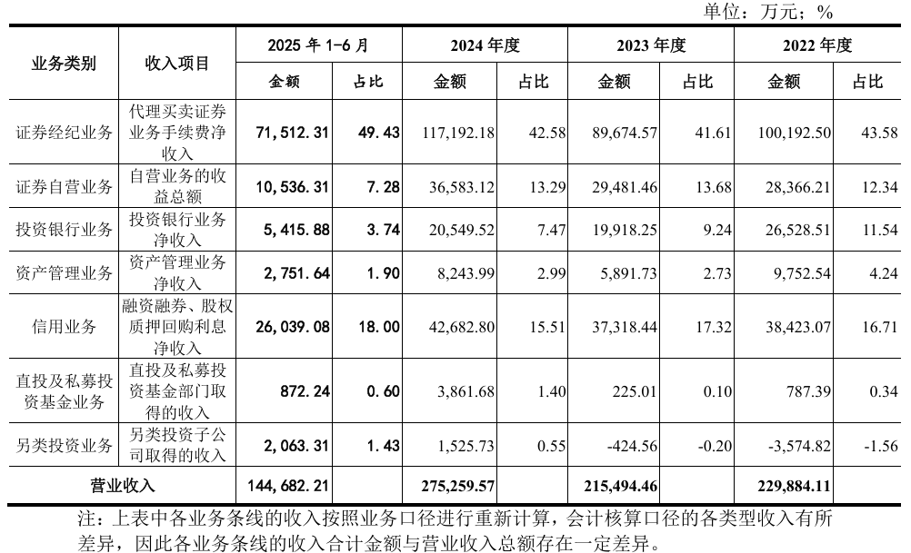 2022年至2025年上半年,公司证券经纪业务收入占比始终超过40%,2024年代理买卖证券业务手续费净收入为11.72亿元。
