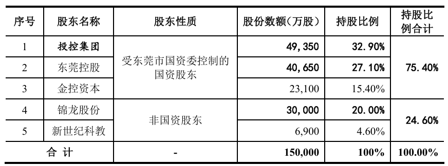 最新招股书显示,东莞市国资委通过投控集团、东莞控股、金控资本间接控制公司75.4%的股份,能够对股东大会决议产生决定性影响。