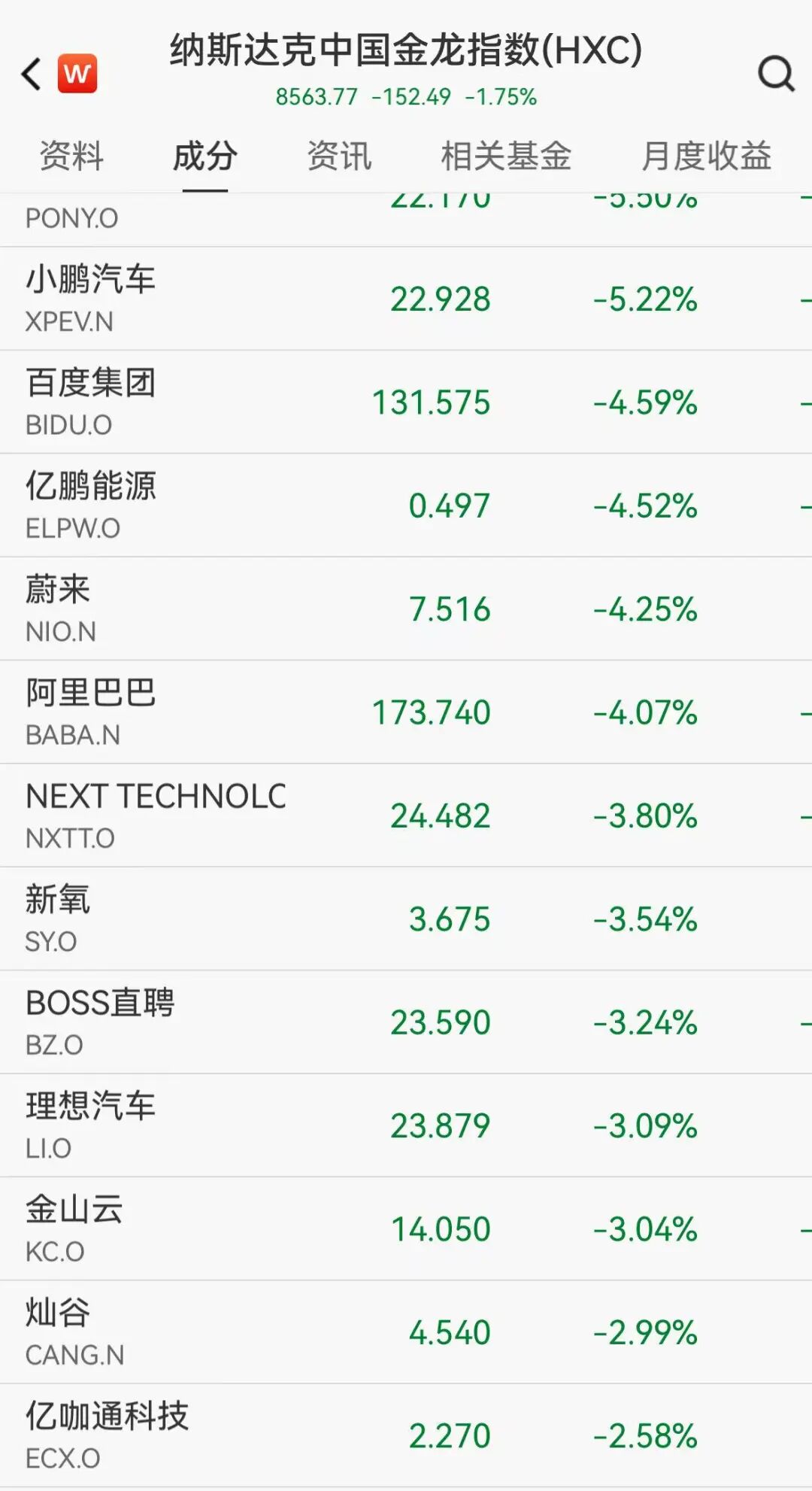 中概股方面,纳斯达克中国金龙指数跌超1.7%,其中小鹏跌超5%,百度、蔚来、阿里等热门中概股跌超4%,金山云、理想、跌超3%。