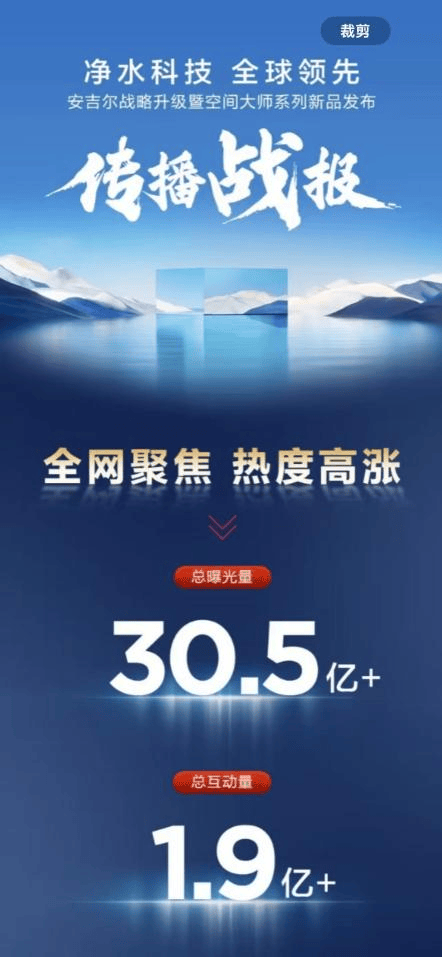 5月1日,安吉尔亚洲一号店正式开业,该门店作为安吉尔打造的样板门店,体验空间超500平米;5-6月,安吉尔发起“净水设计师联盟”,并通过家居家装垂类媒体,向消费者传递“品质家装,净水为先”的理念。