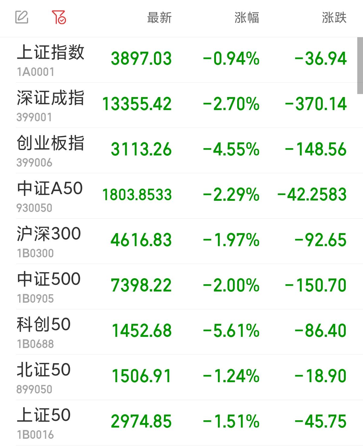中新经纬10月10日电 周五,A股三大指数集体回调。截至收盘,上证指数跌0.94%,报3897.03点;深证成指跌2.70%,报13355.42点;创业板指跌4.55%,报3113.26点。
