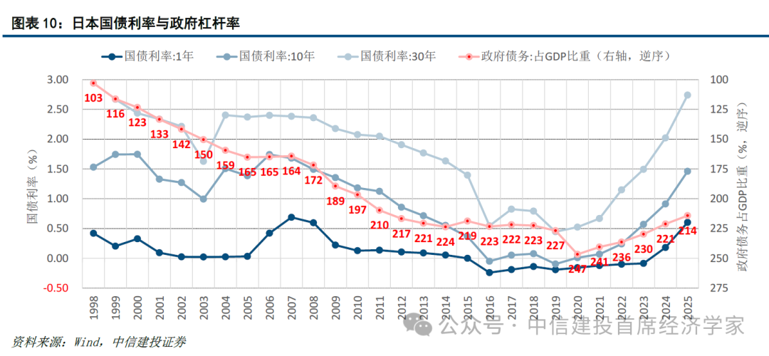 展望十月及四季度,日本国债利率预计将出现边际触顶回落。当前,日本的各主要期限国债收益率,已基本处于近三十年高位,但政府债务杠杆率仍远未恢复,仍在对GDP约210%-220%的高杠杆水平,利率继续上行的条件难言成熟。同时,随高市早苗的胜选,日本重回“宽财政、宽货币、低利率”的概率较大。