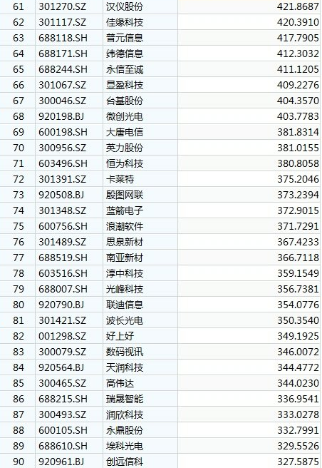 大名鼎鼎的中芯国际,静态市盈率刚好触及300倍红线,为300.45倍。