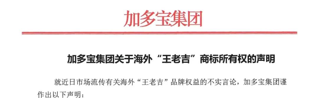 10月10日上午,加多宝发布《关于海外“王老吉”商标所有权的声明》回应。其表示,当前,加多宝在全球超过60个主要国家和地区注册王老吉商标,其拥有的海外王老吉品牌凉茶至今已远销全世界数十个国家和地区。