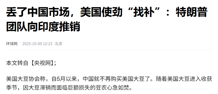中国一颗大豆也不买,特朗普病急乱投医,居然想找印度接盘。