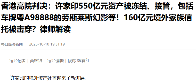 香港高院最近作出判决,许家印家族在全球范围内的资产,全部都由恒大清盘人接管,总价值高达77亿美元,合人民币550亿元左右。