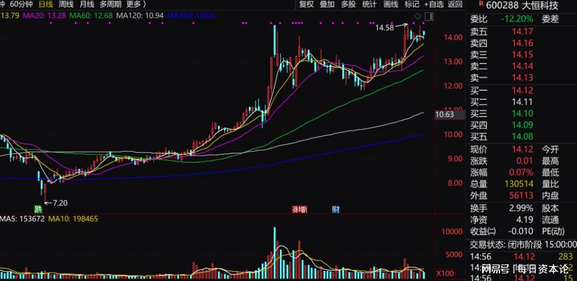 资本市场给予了积极回应。大恒科技股价自今年4月9日探底7.2元/股后,其走势十分强劲,至9月25日其股价已成功翻倍,最高14.58元/股。截至10月10日收盘,大恒科技股价为14.12元,依然在高位震荡。