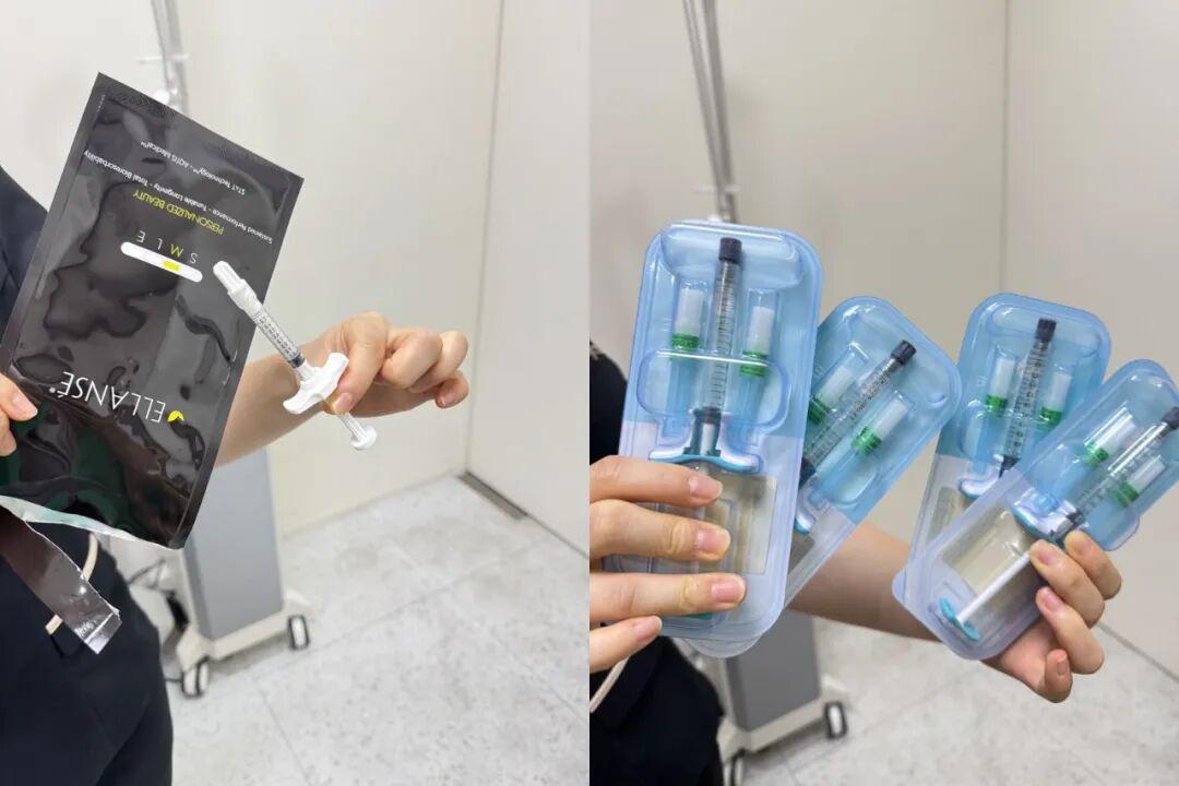 ▲ 钱萌萌在做项目前,医生当面拆开的眼式和长效水光针。图 / 讲述者提供