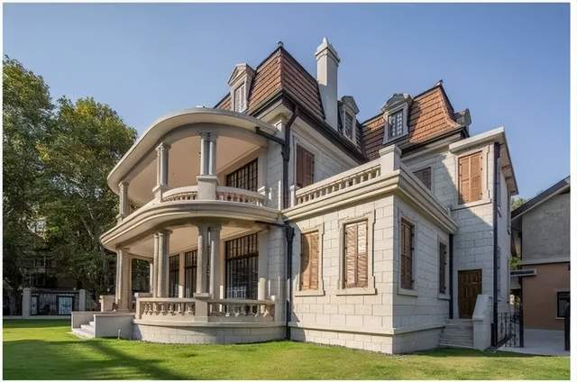 比起吃饭,这里真的更适合打卡。这栋老洋房建于1921年,又名罗森菲尔德府邸(Villa rosenfeld),最初是美籍犹太商人罗森菲尔德家族的府邸,由西班牙建筑师Abelardo lafuente设计,后来成了宋子文在上海的私宅别墅之一,还是他为蒋宋联姻准备的嫁礼,被列为第四批上海市优秀历史建筑。