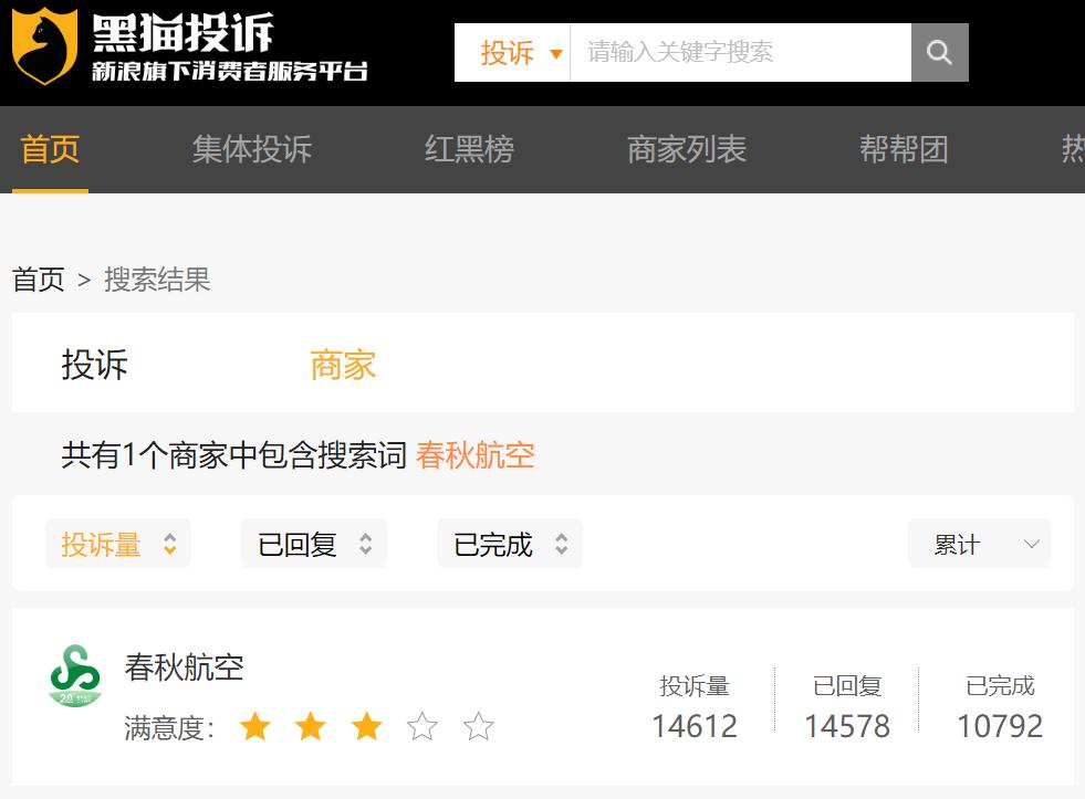 不过,过度压缩成本和增加收费项目,难免影响消费体验,春秋的廉航品牌打响了,口碑却难以跟上。在黑猫投诉平台上,针对春秋航空的投诉量高达14612条。