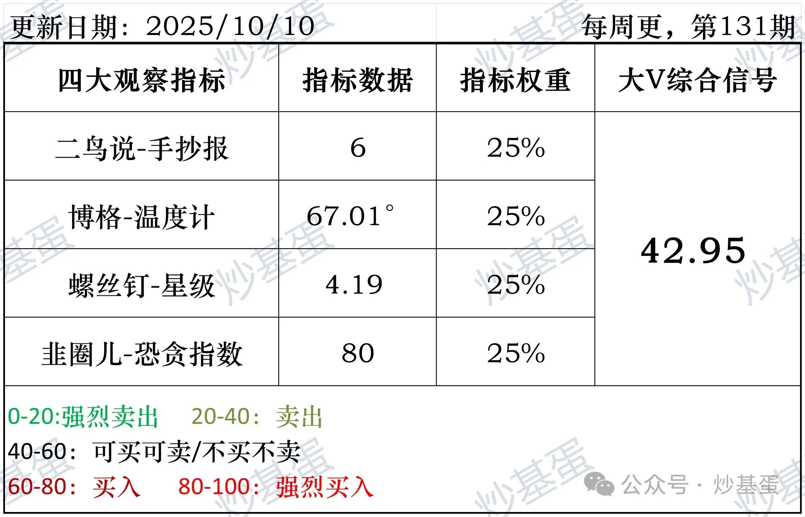 2025年10月10日更新:【#大V综合信号#】42.95不买不卖(上期45.85)