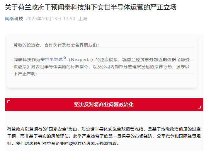 当然,闻泰科技也发布了严正立场。
