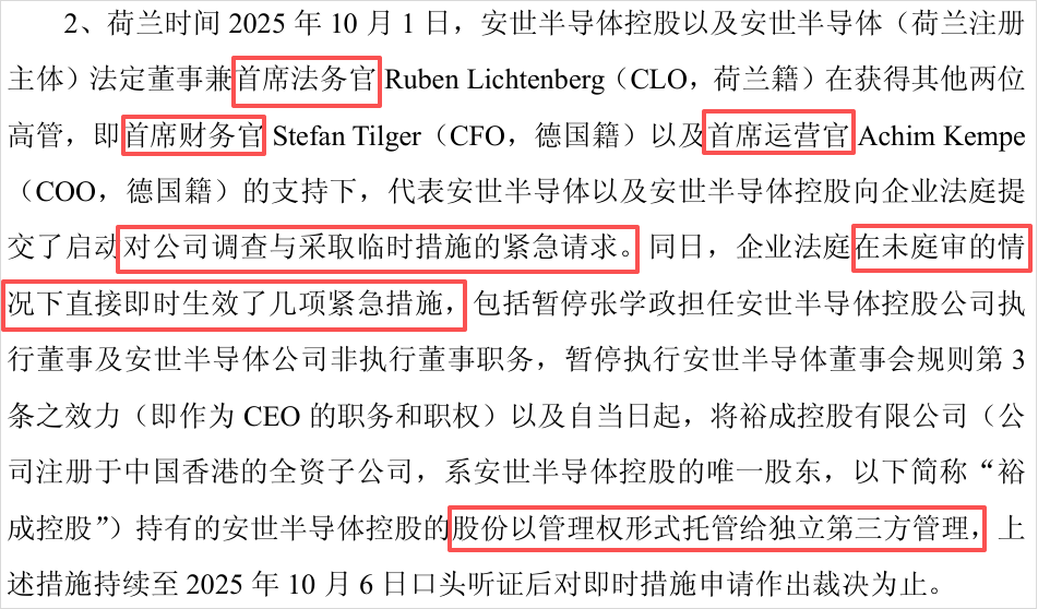 但在未庭审的情况下,直接即时生效了几项闻泰科技对安世控制权转移的措施。