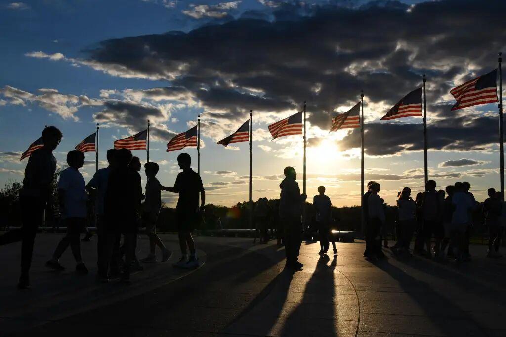 10月8日,在美国华盛顿,人们聚集在华盛顿纪念碑前图:新华社