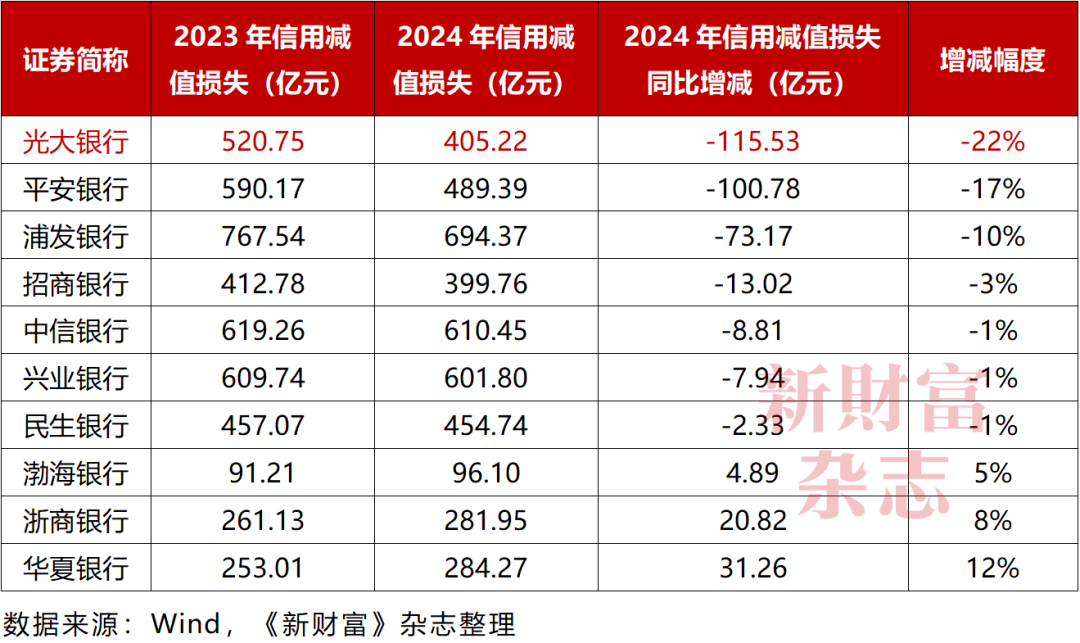 表9:2024年,光大银行计提的信用减值损失降幅达22%