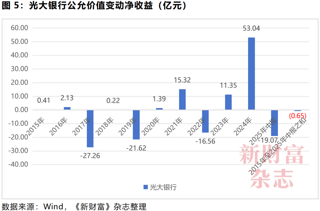 2025年上半年,光大银行该项录得19.07亿元亏损,可见其波动较大。