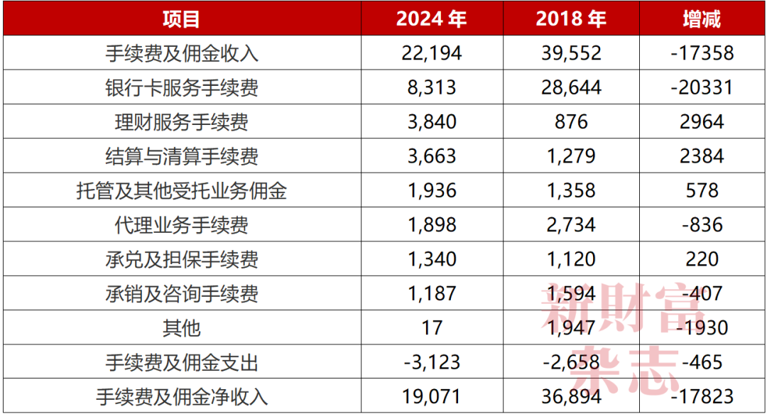 手续费及佣金净收入6年腰斩,从招行的1/2降至1/4