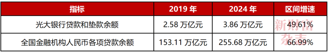 近年来,光大银行增速显著跑输银行业大盘。2019—2024年,其总资产、总负债增速均低于全国银行业超10个百分点,核心的贷款业务增速更低于行业17个百分点。