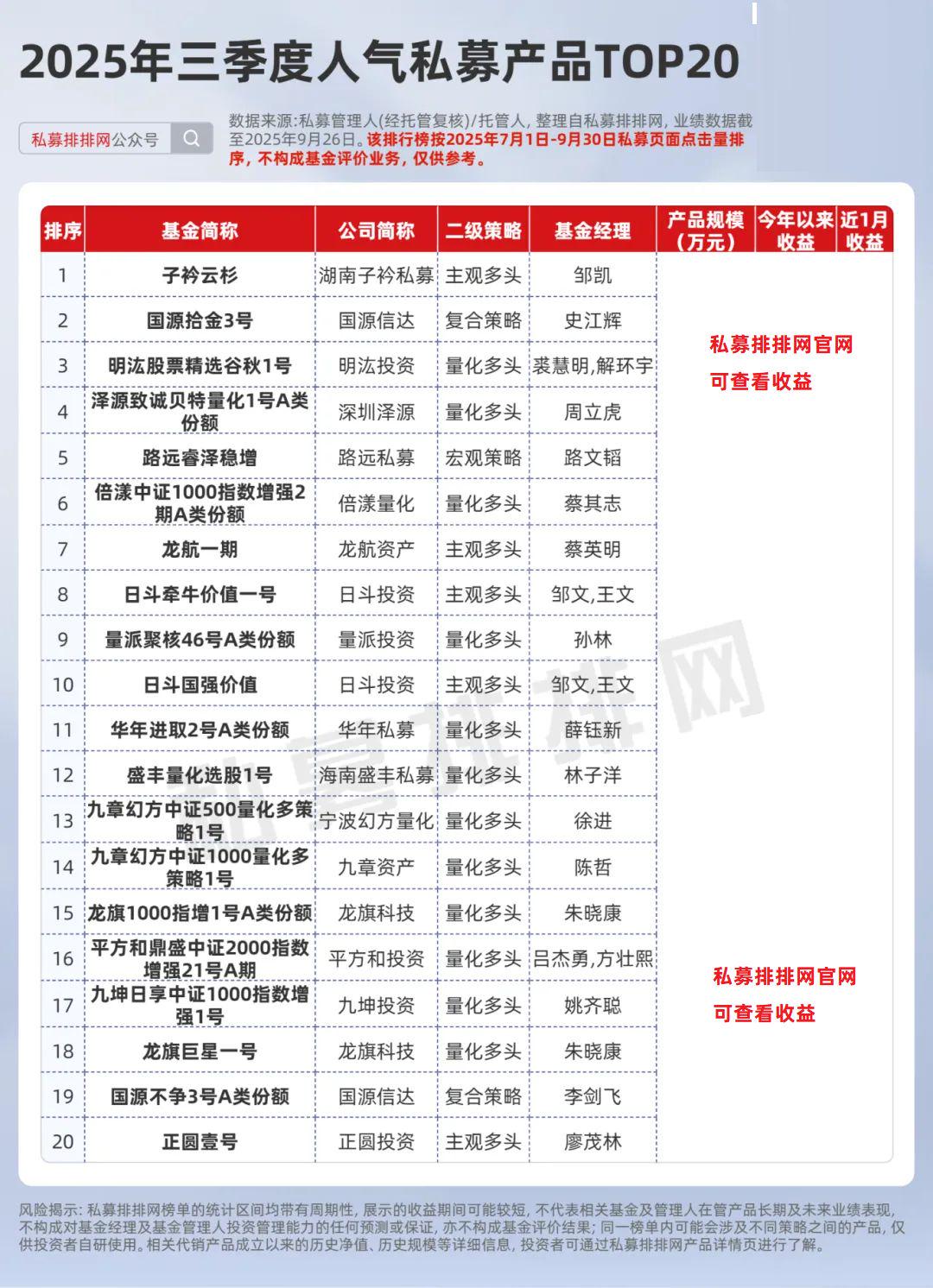 接下来,笔者将为大家盘点私募排排网2025年三季度的人气私募基金经理、人气私募公司以及人气私募产品。(注:本文业绩数据截至2025年9月26日)