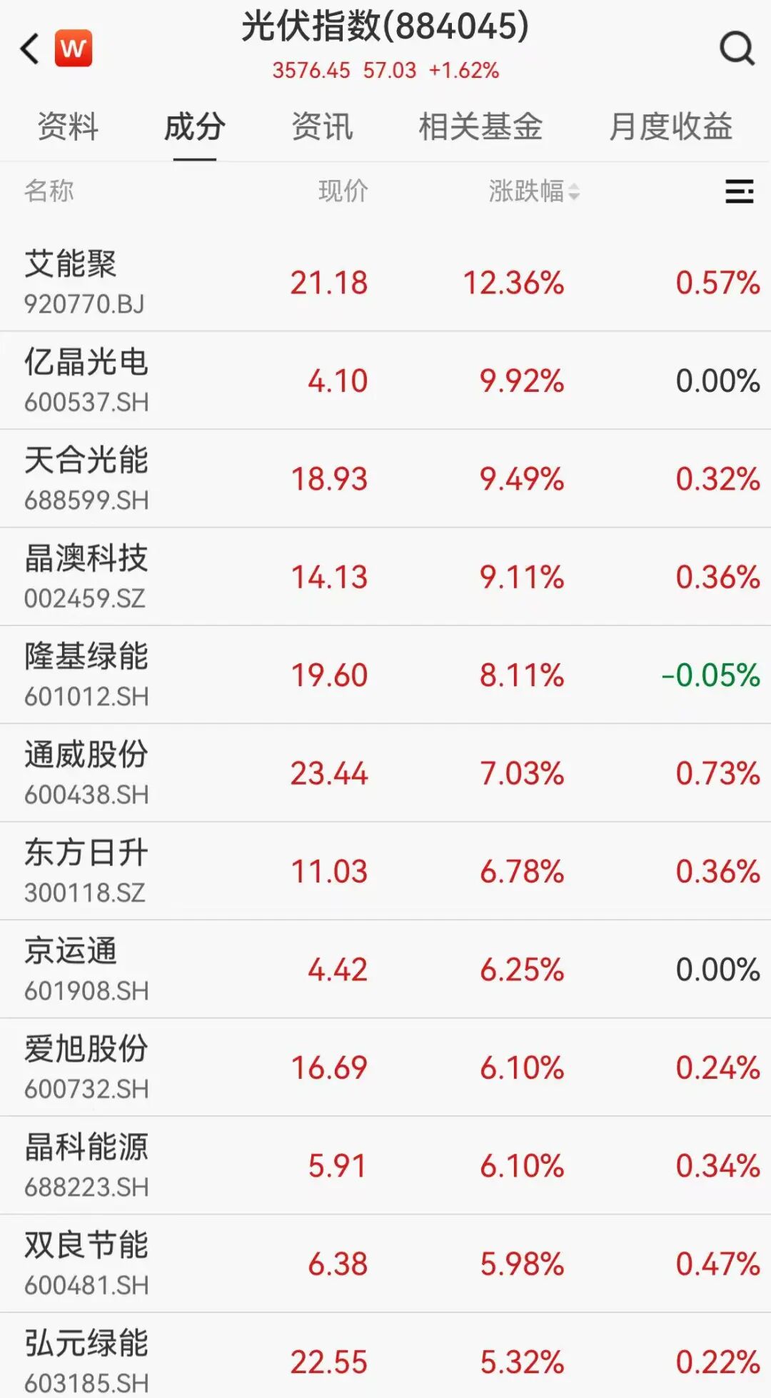 今日,光伏概念震荡反弹,耀皮玻璃涨停,隆基绿能、弘元绿能一度涨停,晶澳科技、晶科能源等多股跟涨。