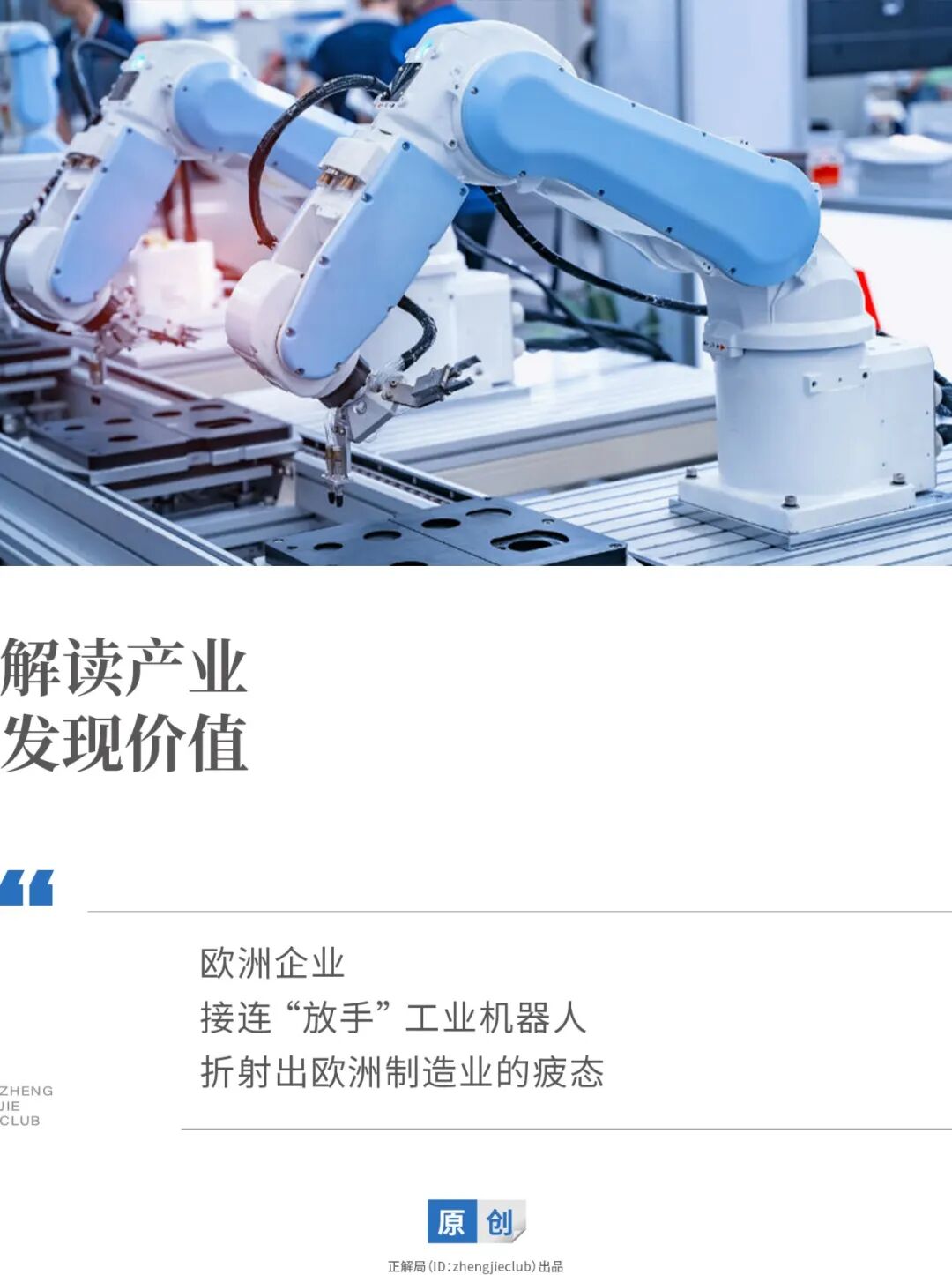 欧洲企业接连“放手”工业机器人,折射出欧洲制造业的疲态。